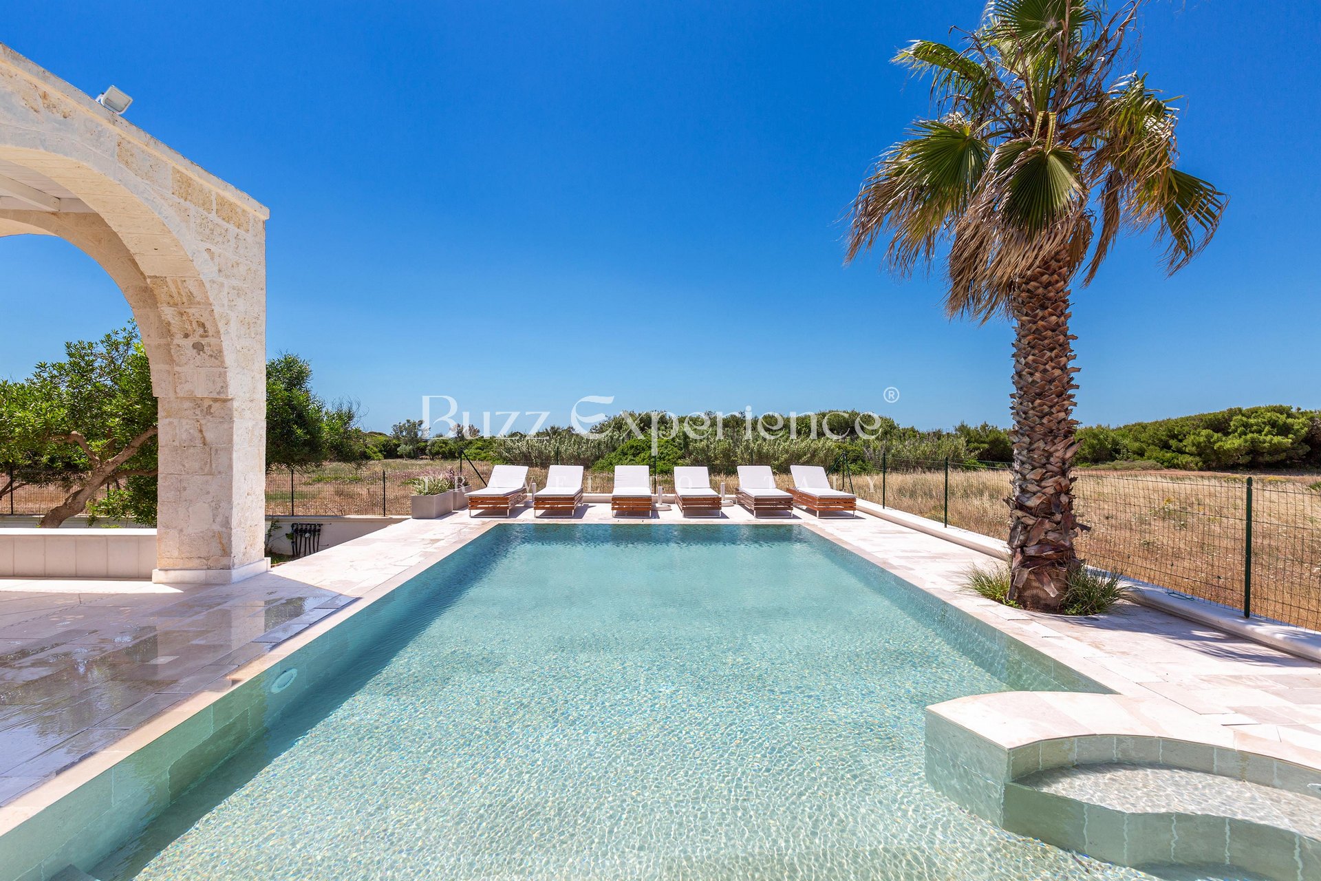 Where the golden sand meets the turquoise sea of the Ionian coast, Villa Marechiaro rises as a haven of elegance and light. Just steps from the shoreline in Campomarino di Maruggio, this magnificent seafront residence with private pool redefines the concept of coastal luxury.