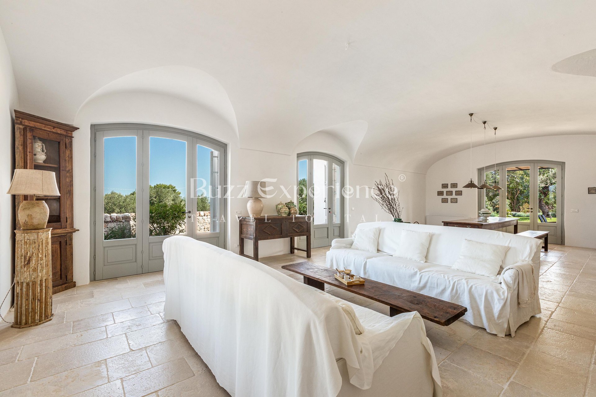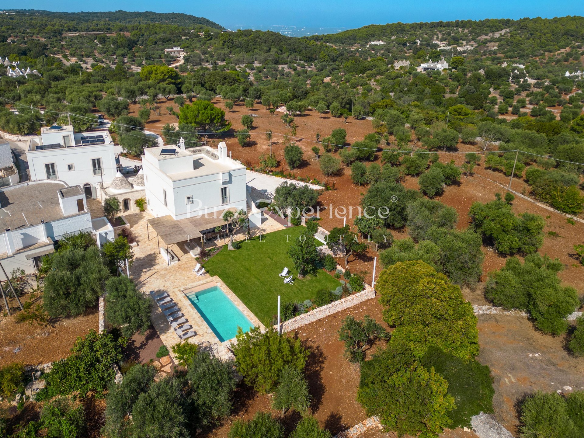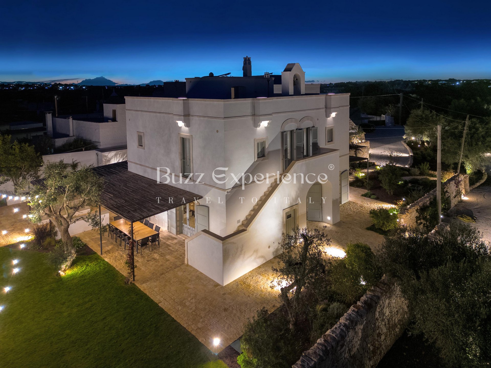 Designed for gatherings of up to 16/18 guests, the property is composed of two main residences seamlessly connected by traditional trulli, creating a unique architectural harmony. Outdoors, every corner invites you to embrace the Italian lifestyle: lounge by the pool under the olive trees, sip aperitivi on the panoramic terrace, or enjoy al fresco dinners in the shaded patio where the evenings stretch endlessly under a sky full of stars.