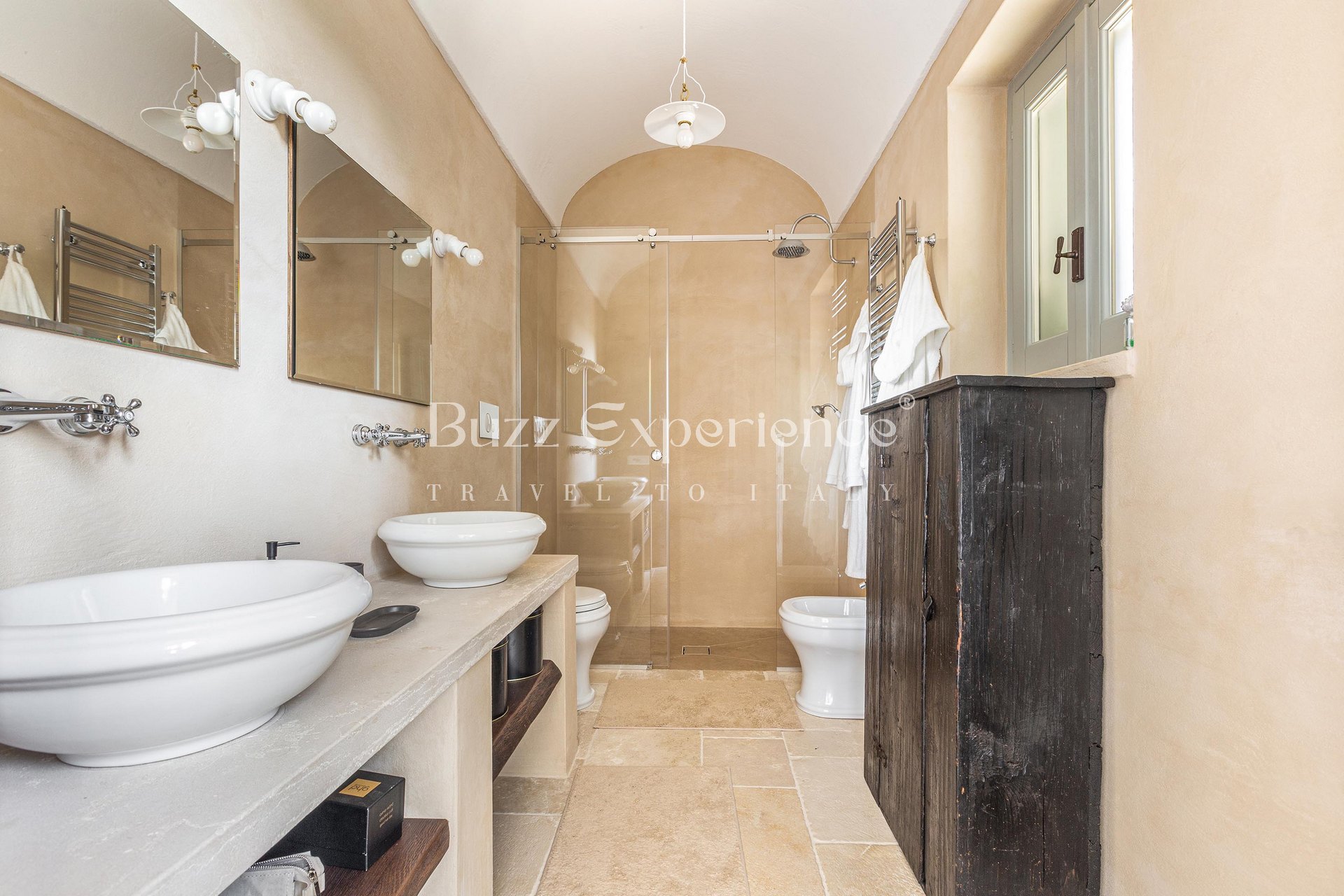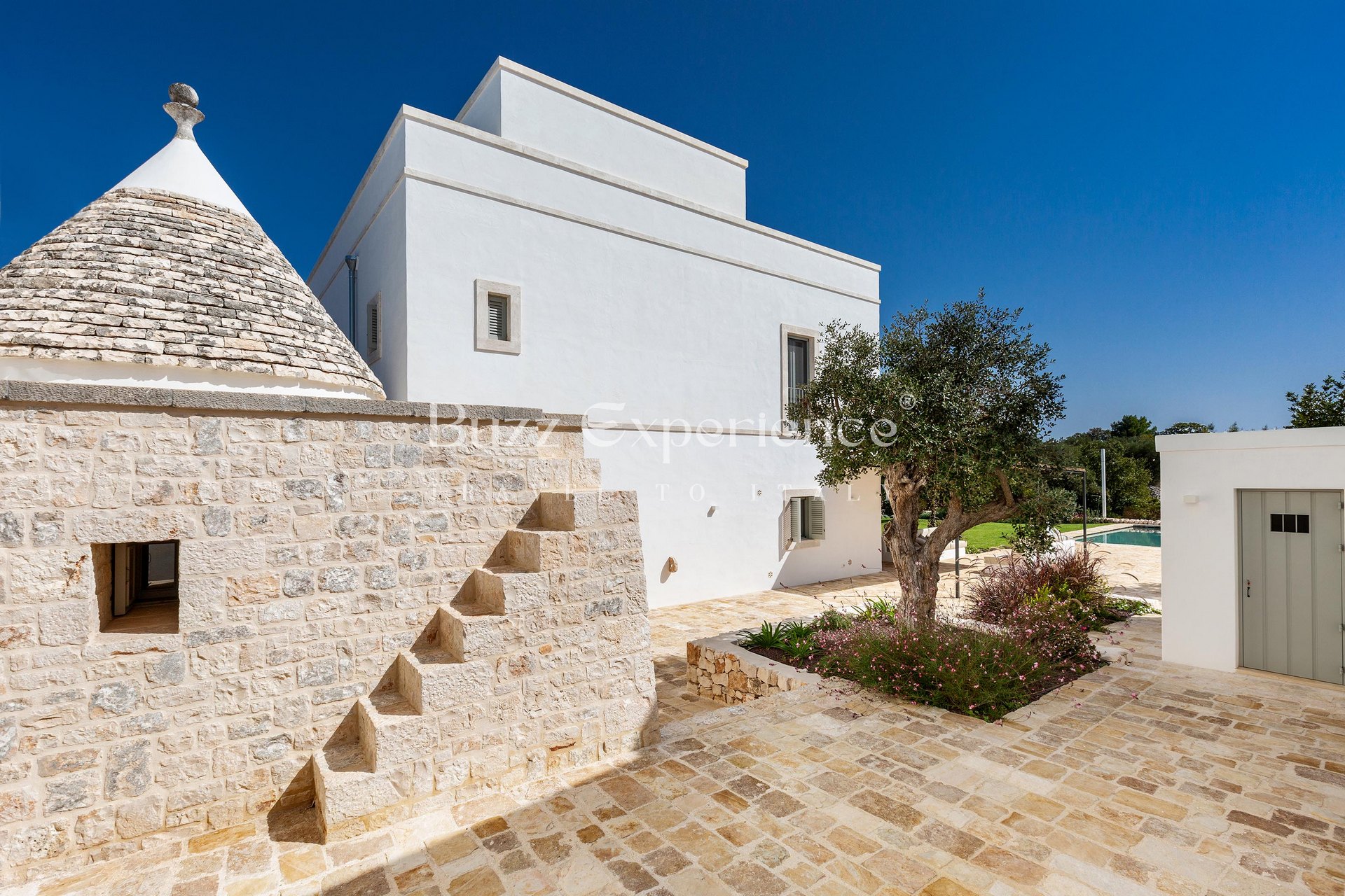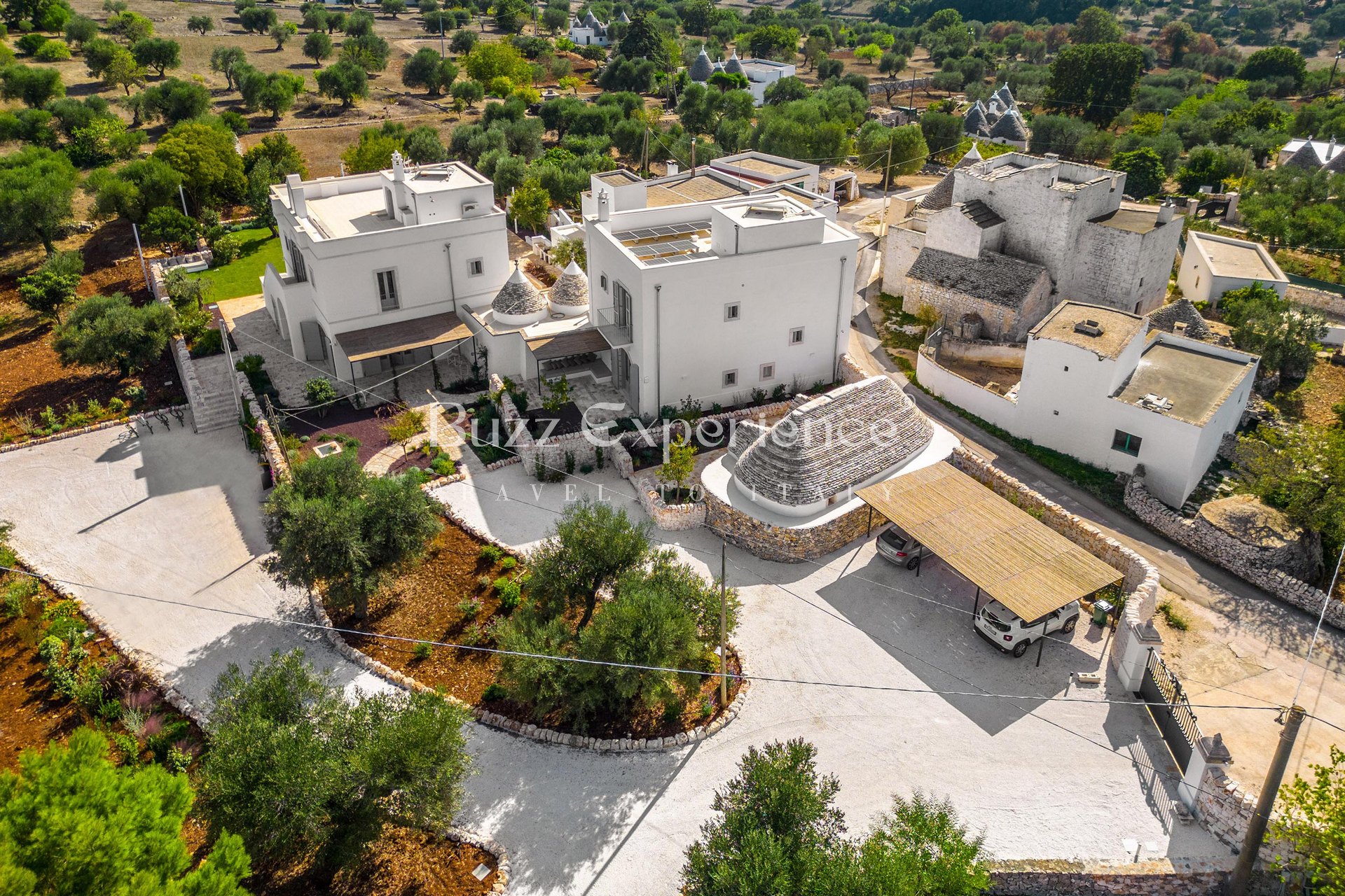 Designed for gatherings of up to 16/18 guests, the property is composed of two main residences seamlessly connected by traditional trulli, creating a unique architectural harmony. Outdoors, every corner invites you to embrace the Italian lifestyle: lounge by the pool under the olive trees, sip aperitivi on the panoramic terrace, or enjoy al fresco dinners in the shaded patio where the evenings stretch endlessly under a sky full of stars.