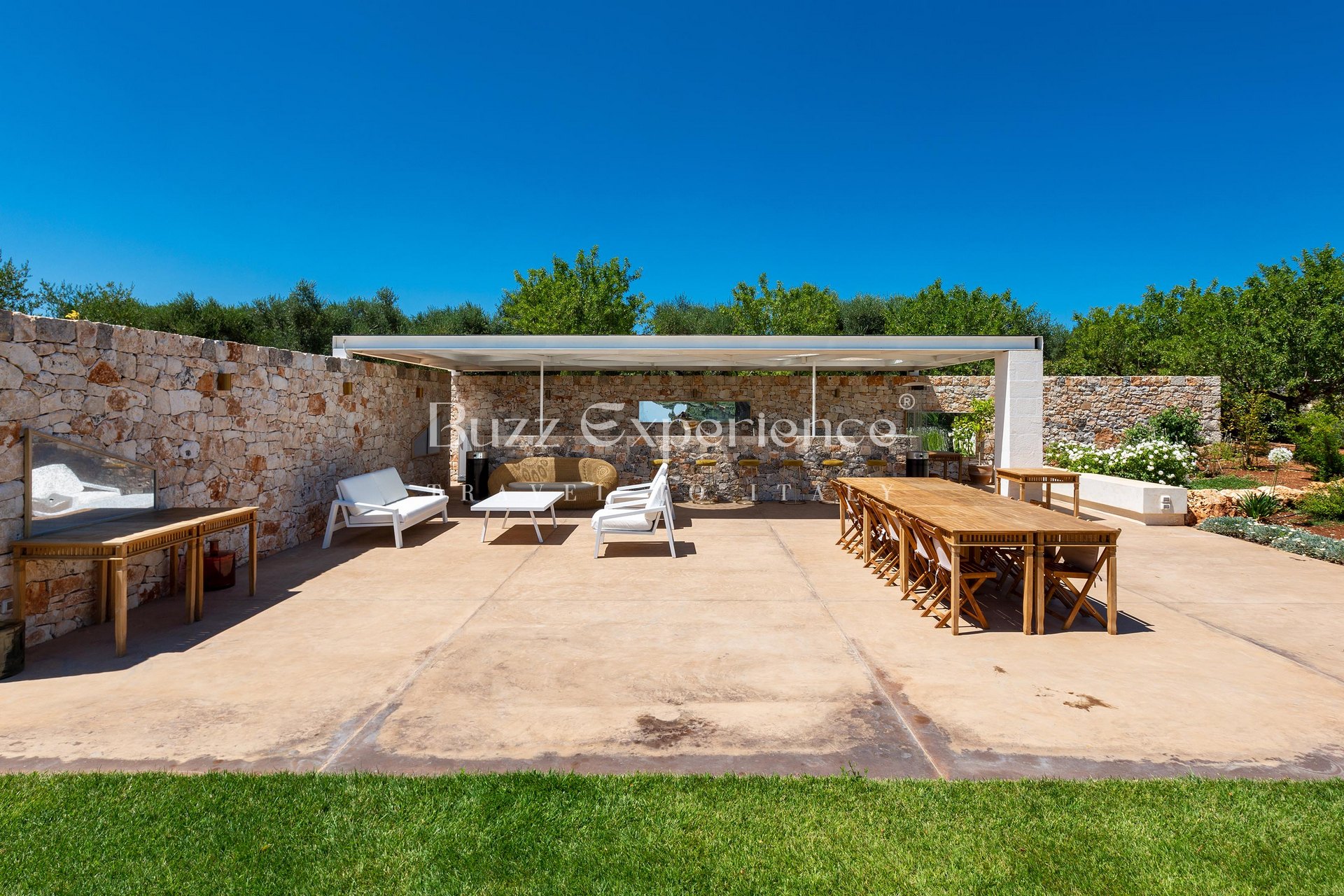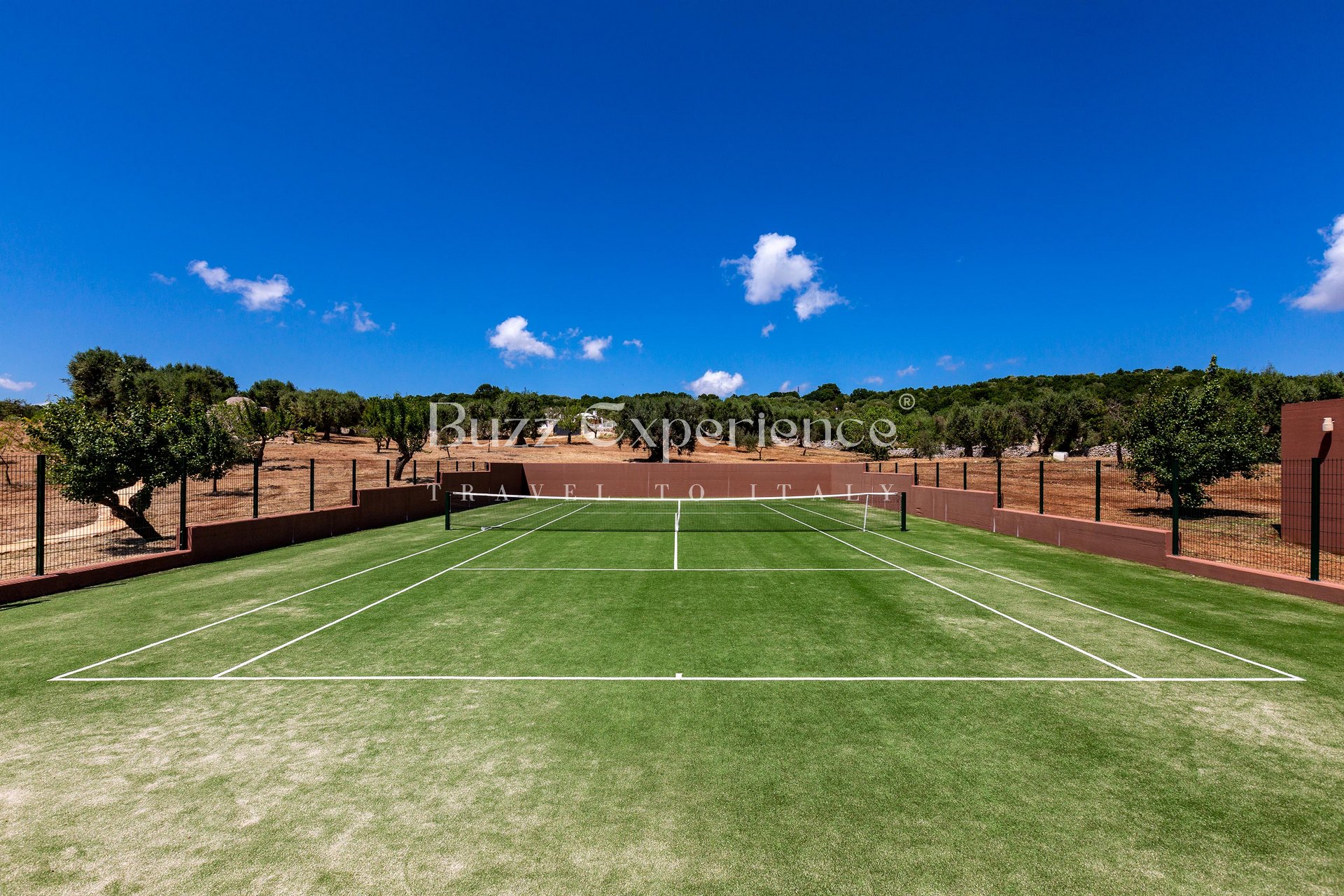 Every element of Trulli Panorama reflects excellence: a professional chef’s kitchen, tennis court with synthetic grass, outdoor bar and BBQ area, ping-pong table, and a dedicated wellness space with massage bed. The estate includes a main villa and several independent trulli suites, each carefully restored to preserve their iconic conical architecture while offering modern design, air conditioning, and heated floors.