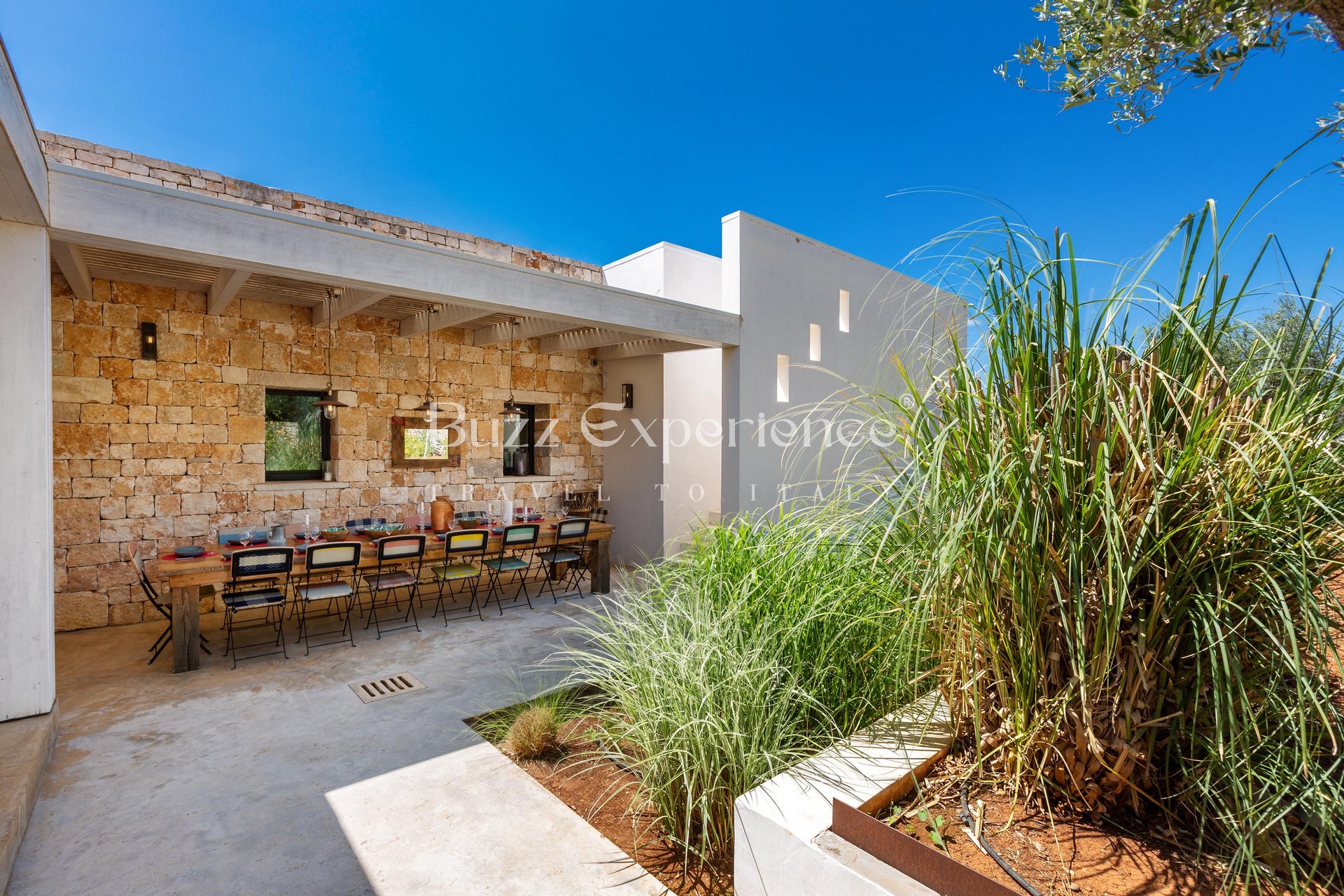 Outdoors, elegant pergolas, shaded lounges, and stone pathways invite guests to enjoy the essence of the Italian dolce vita: leisurely breakfasts by the pool, sunset aperitivi under olive trees, and starry evenings surrounded by silence and nature.
