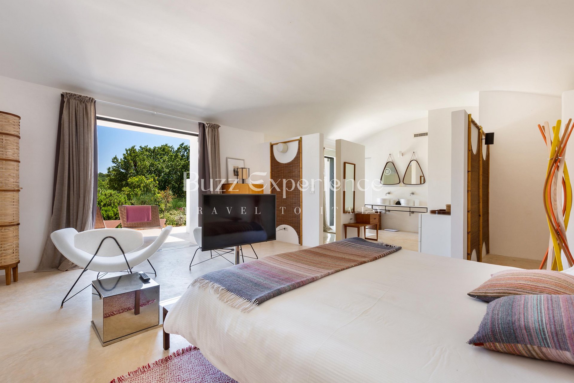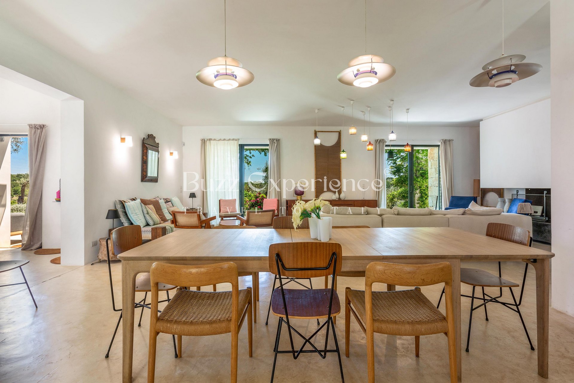 This extraordinary estate offers 8 suites and 10 bathrooms, accommodating up to 16 guests in absolute comfort and privacy. The property stretches over six hectares of Mediterranean landscape, featuring a 15x6m infinity pool, manicured lawns, and panoramic terraces that overlook the timeless beauty of the countryside.